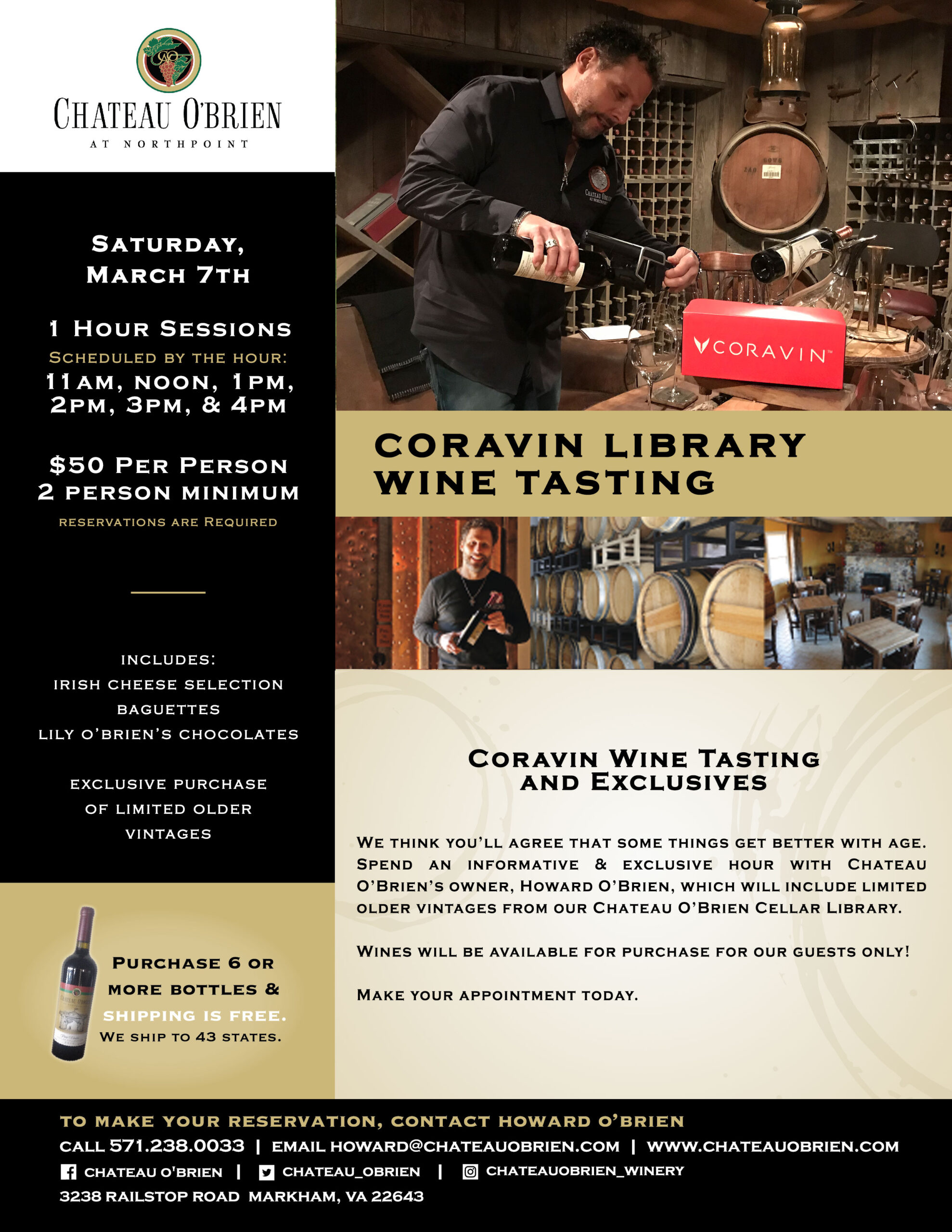 We think you’ll agree that some things get better with age. Spend an informative & exclusive hour with Chateau O’Brien’s owner, Howard O’Brien.