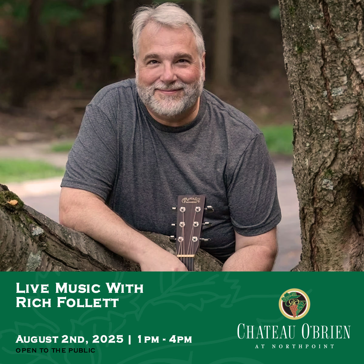 « All Events This event has passed. Live Music with Rich Follett August 2, 2025 @ 1:00 pm - 4:00 pm « Cabernet Sauvignon Comparison Tannat Vertical Tasting » Live Music with Rich Follett. 1-4pm. Open to the Public. Visit our Facebook Page | Join our email list + Google Calendar+ iCal Export Details Date: August 2, 2025 Time: 1:00 pm - 4:00 pm Event Category: Events Related Events Live Irish Music March 15 @ 1:00 pm - 4:00 pm Live Music Keith Dill March 22 @ 1:00 pm - 4:00 pm Mourvedre Comparison March 29 @ 2:00 pm
